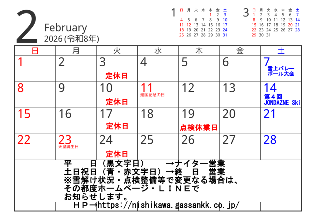 | スキー場ロッジ | 0237-74-2778 |