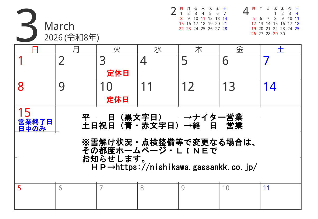 | スキー場リフト下駅 | 0237-74-4055 |